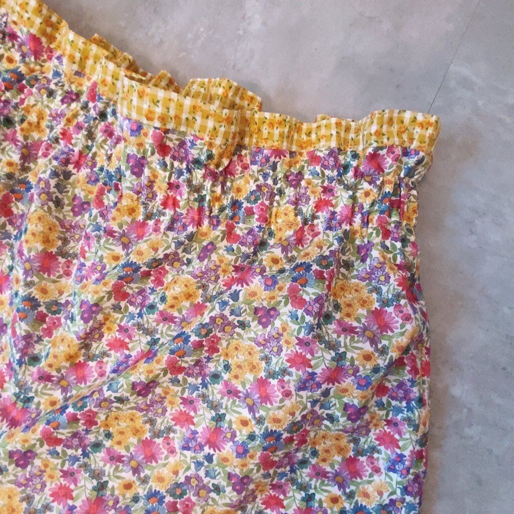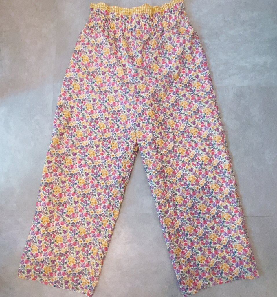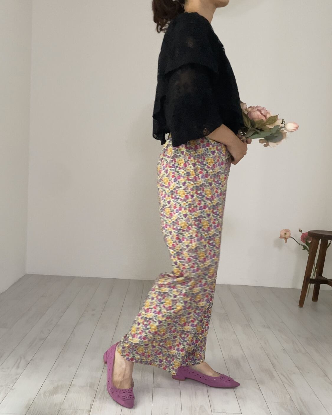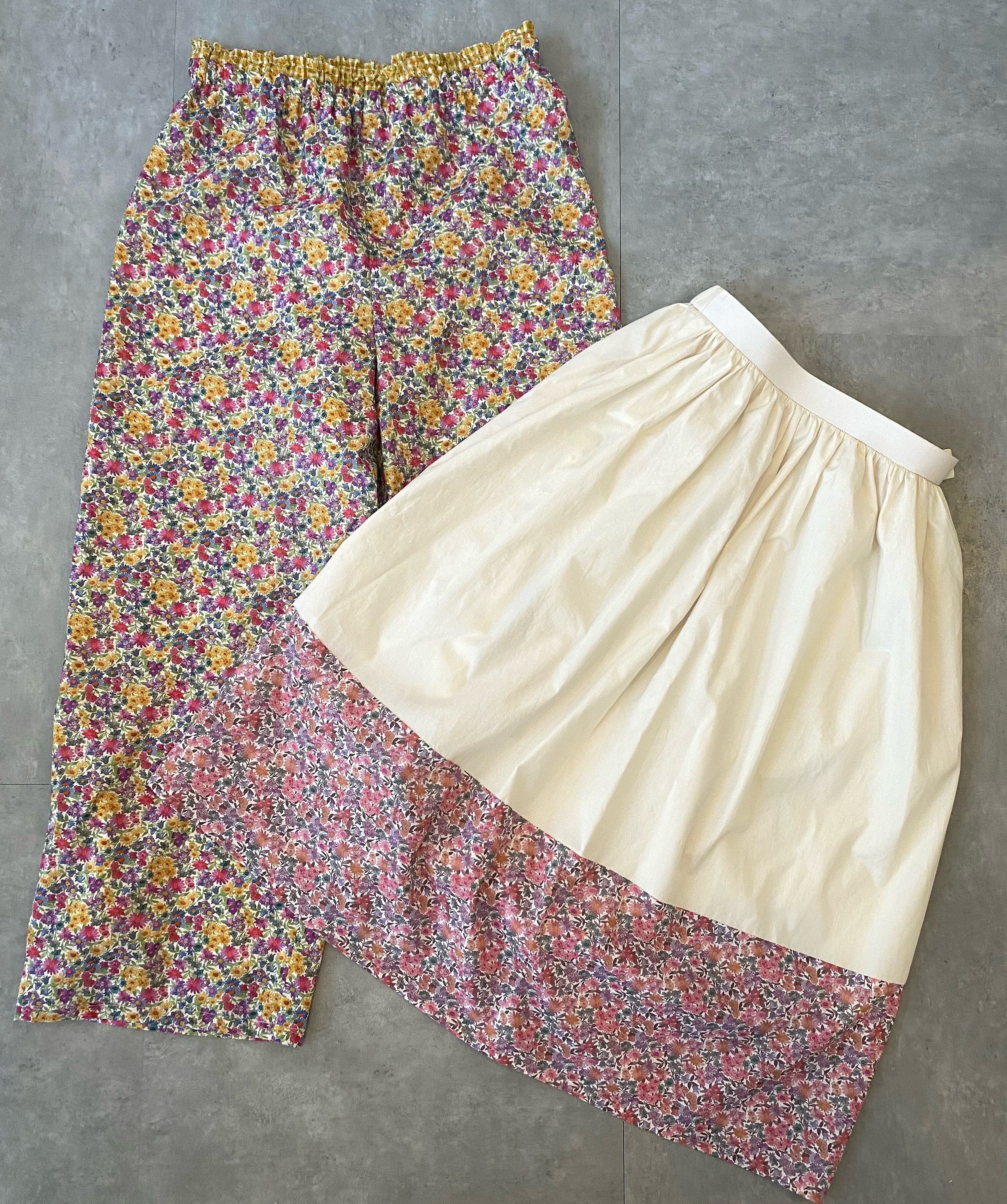英国リバティ社の生地を贅沢に使用した、華やかなイージーパンツ。