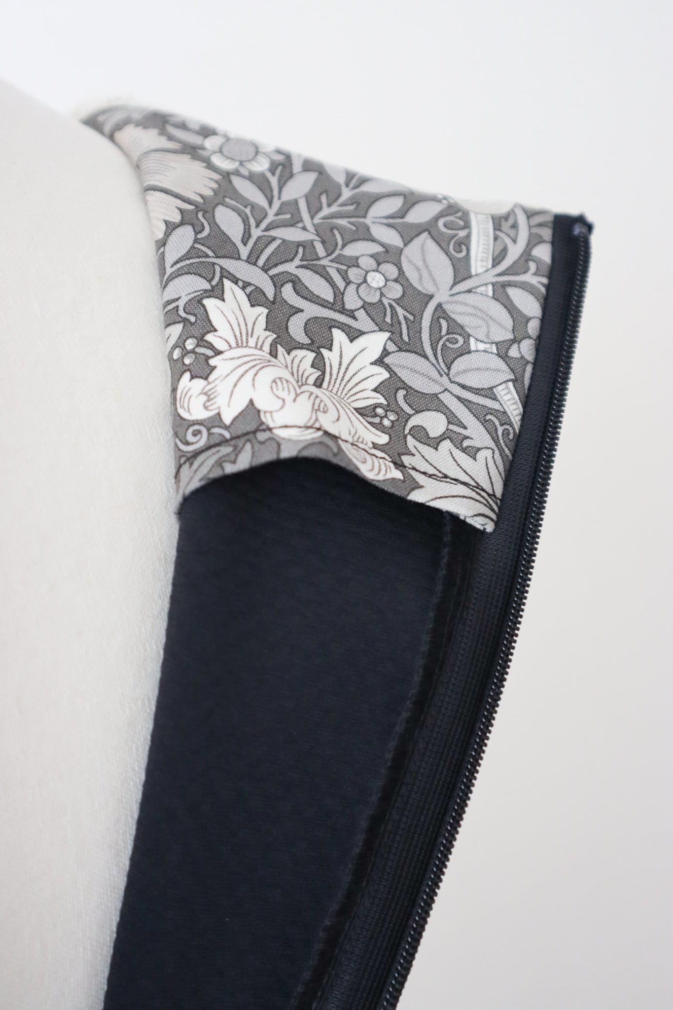 サイドには英国のテキスタイルデザイナー、ウィリアム・モリスの上質なファブリックを贅沢に使用し、歩くたびにゆるやかに広がるシルエットが優雅な陰影を生み出します。