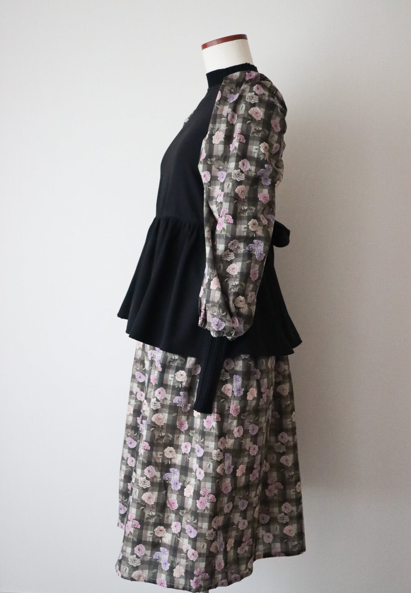 切替からふわりと広がるシルエットは体型をやさしく包み、