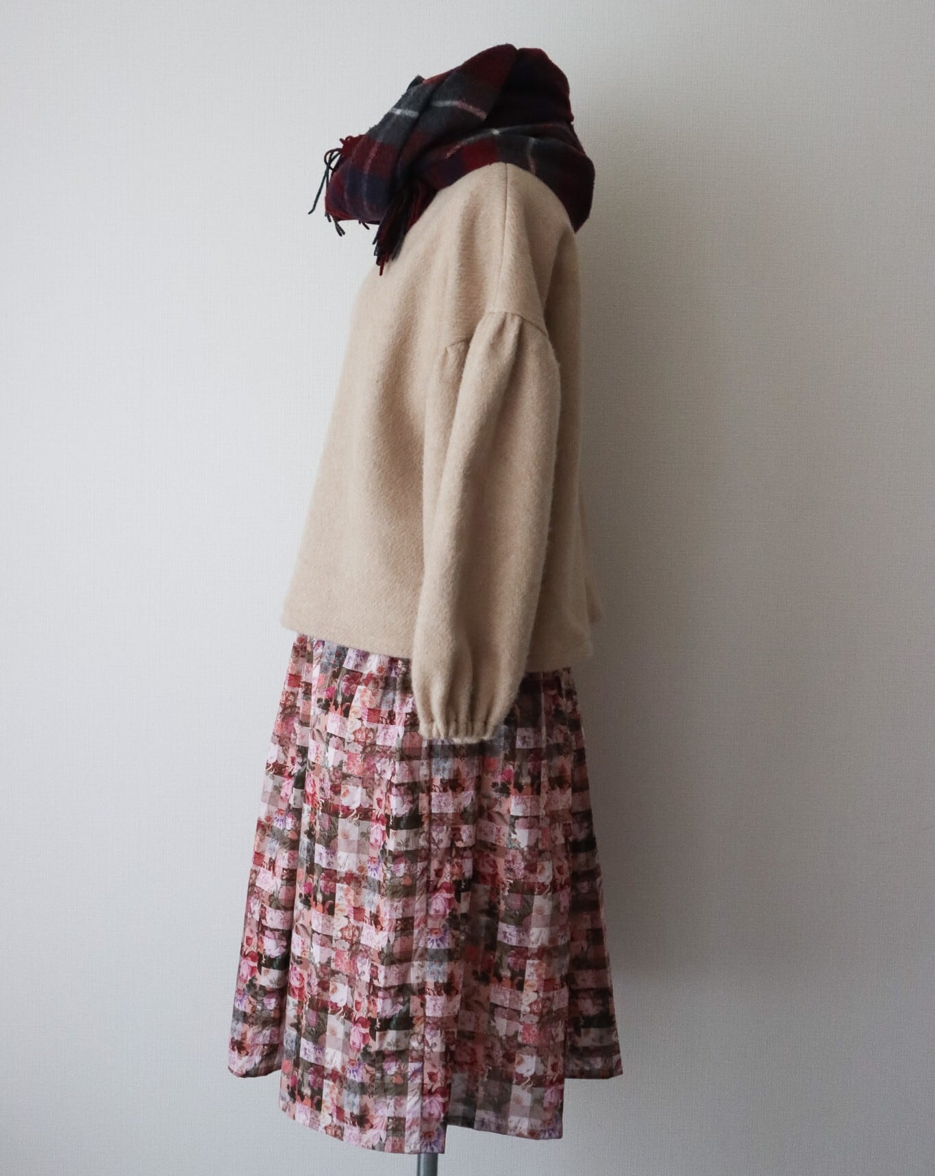 2025AW新作のリバティ生地で仕立てた、AntiqueCarrieのギャザースカート。