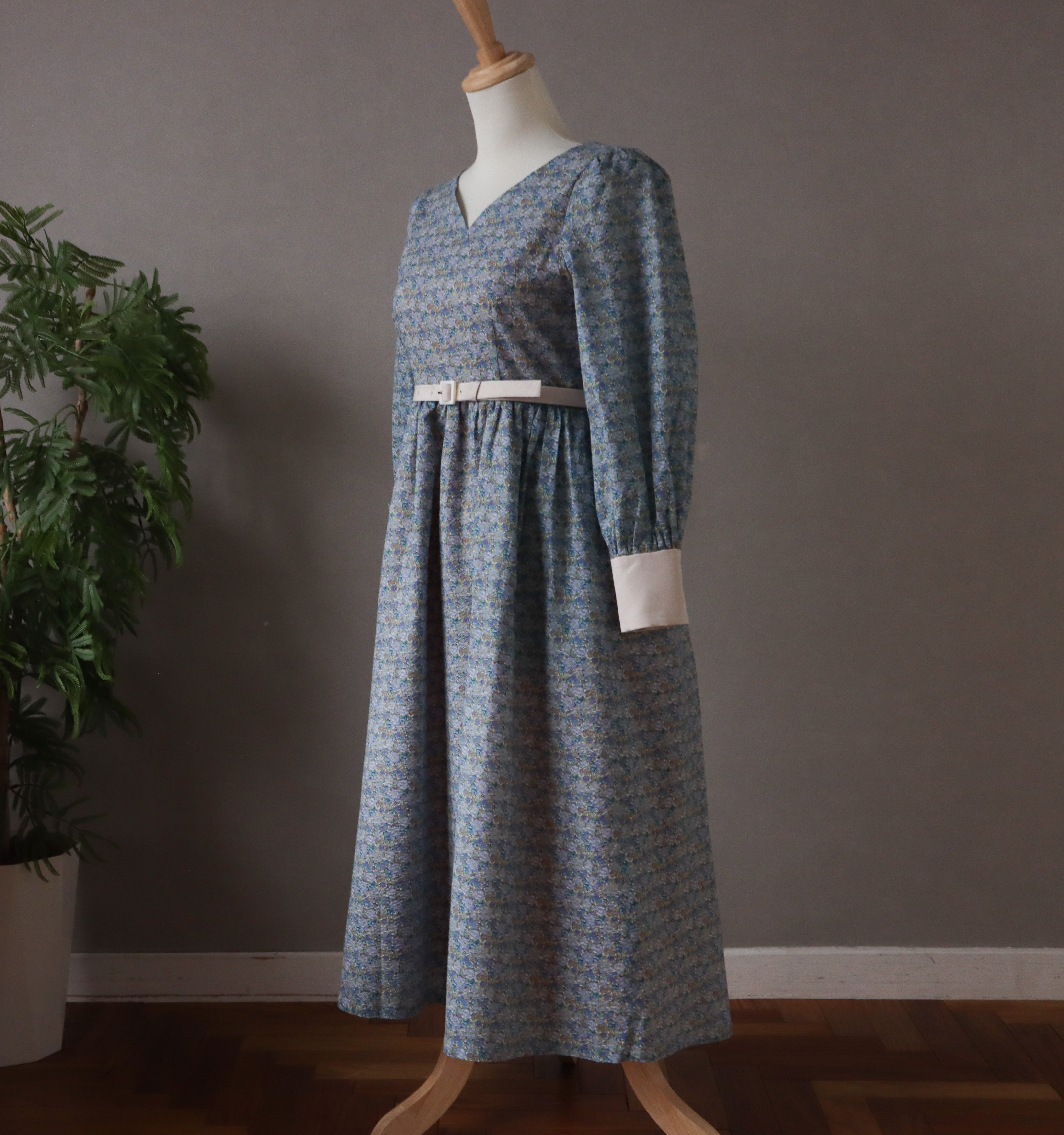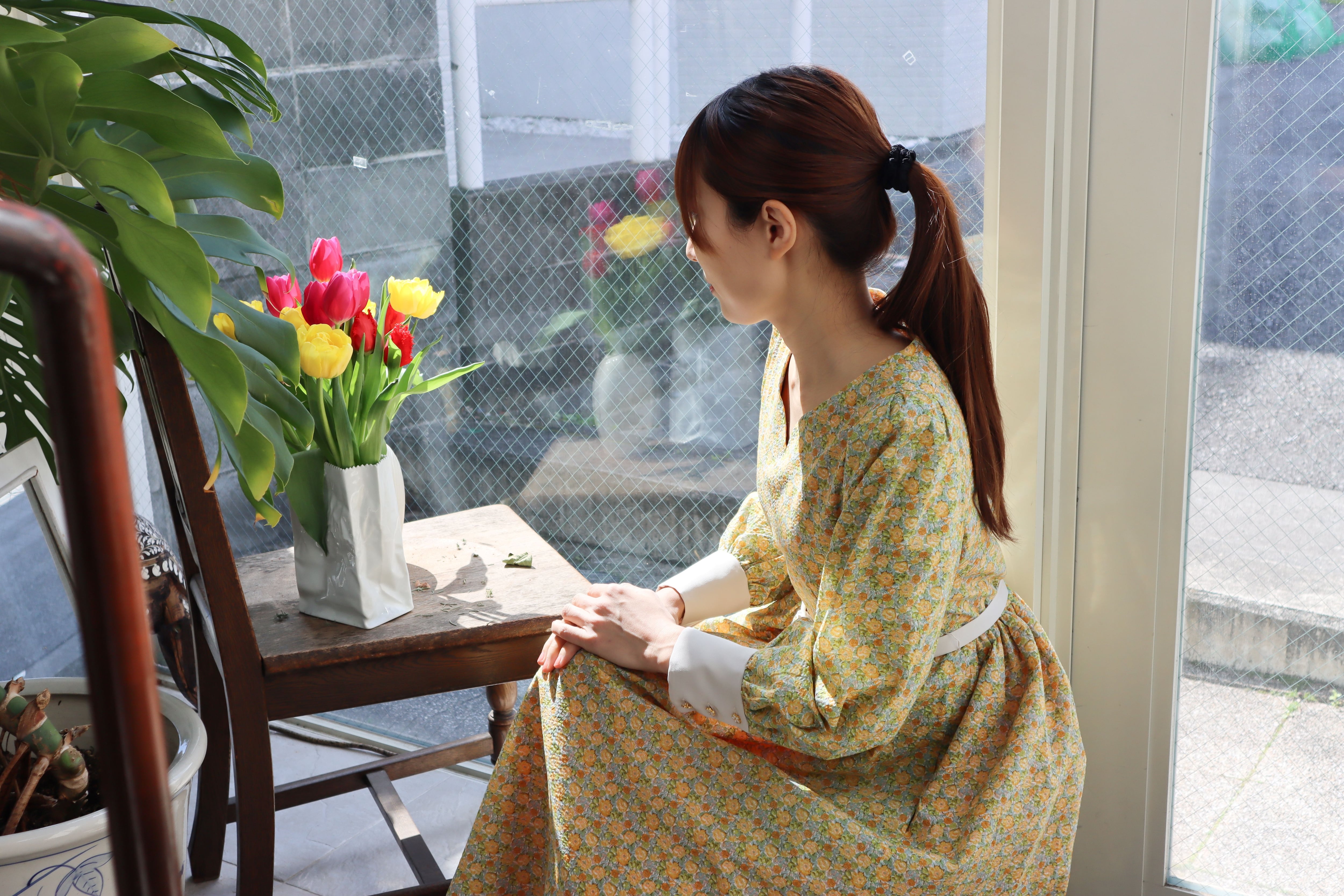 リバティ生地“September”を用いて、4色展開で仕立てたワンピース、“Energy”シリーズが完成しました。夏空のような爽やかなブルー、元気をもらえるイエロー、エネルギーに満ちたレッド、どこか哀愁漂うオレンジ。夏の名残と秋の訪れが同居する花柄が生み出す鮮やかな色彩に、元気をもらえます。